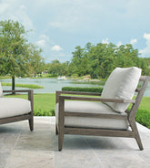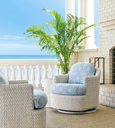 Ocean BreezeVendor: Tommy BahamaThis swivel chair pairs well in seating areas with an accent table in-between Customizable in a variety of fabrics