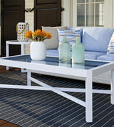 Ocean BreezeVendor: Tommy BahamaThis rectangular cocktail table includes an inset tempered glass top in a soft marine blue coloration