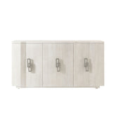 BreezeVendor: Theodore AlexanderThis finely crafted credenza built using wire-brushed cerused pine features interlocking chain link hardware in Dark Sterling finish