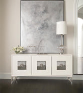 CalistaVendor: Bernhardt FurnitureJewel-like rose pulls accent this glamorous buffet featuring ash veneers in an elegant Silken Pearl finish Ample room for organized storage including a silverware drawer Behind paired centre and left doors is one adjustable/removable shelf