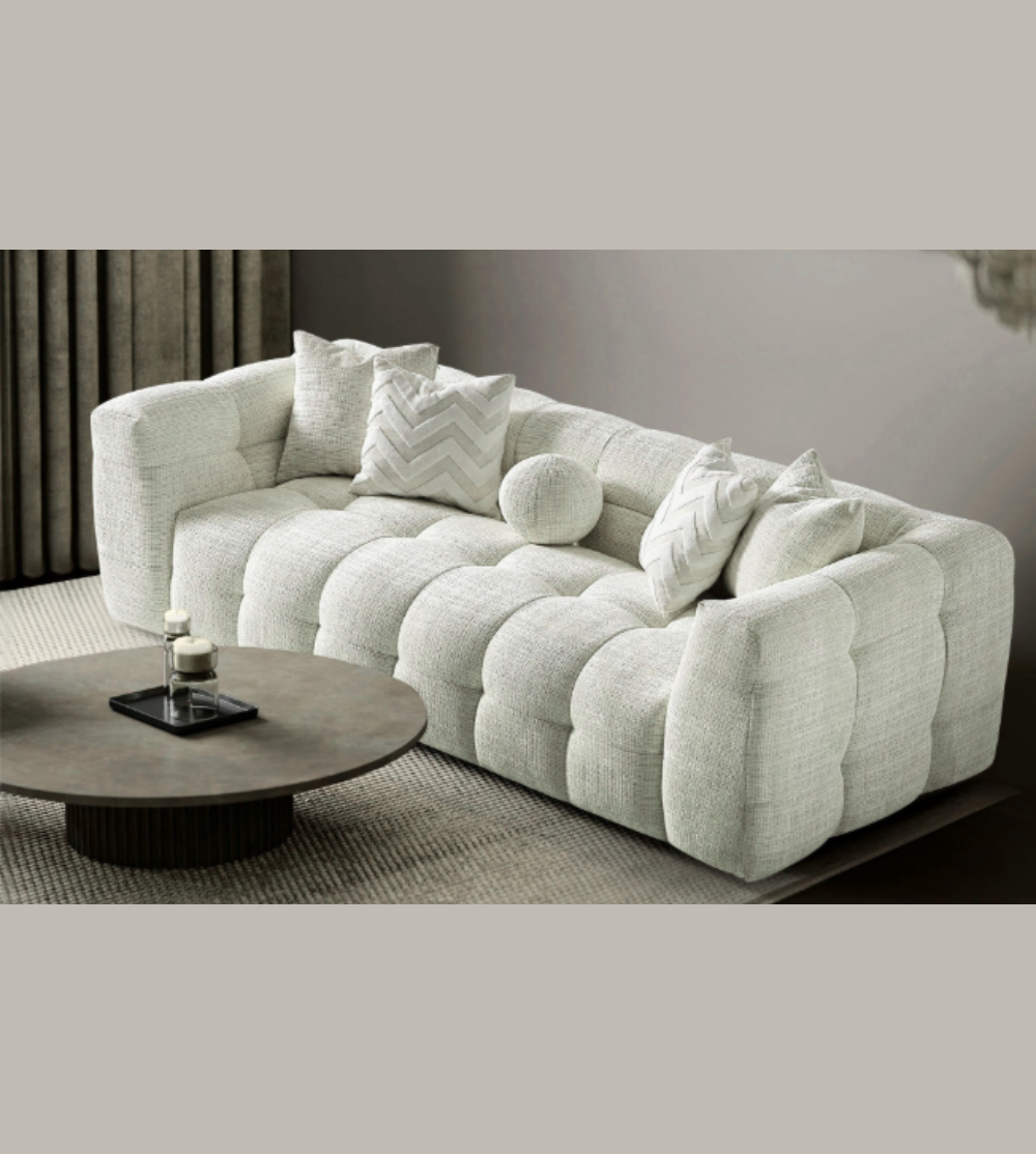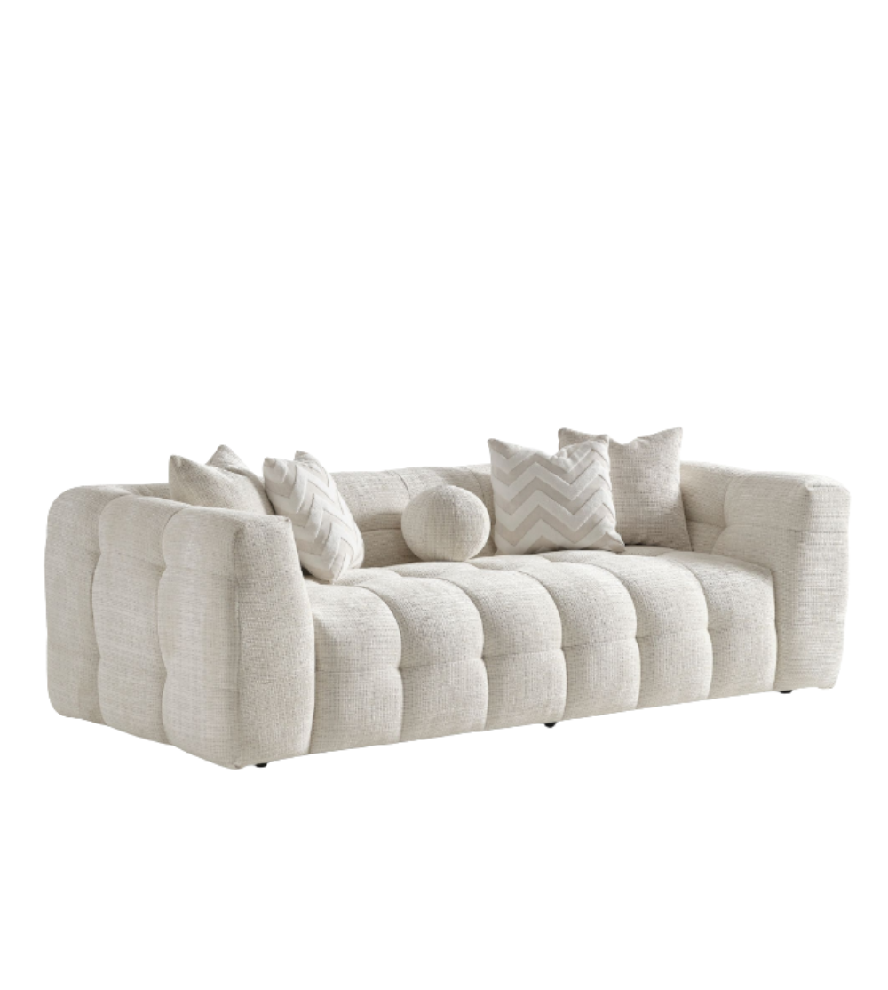 With its soft tufted design and gentle curves, this sofa offers warmth and relaxation.