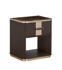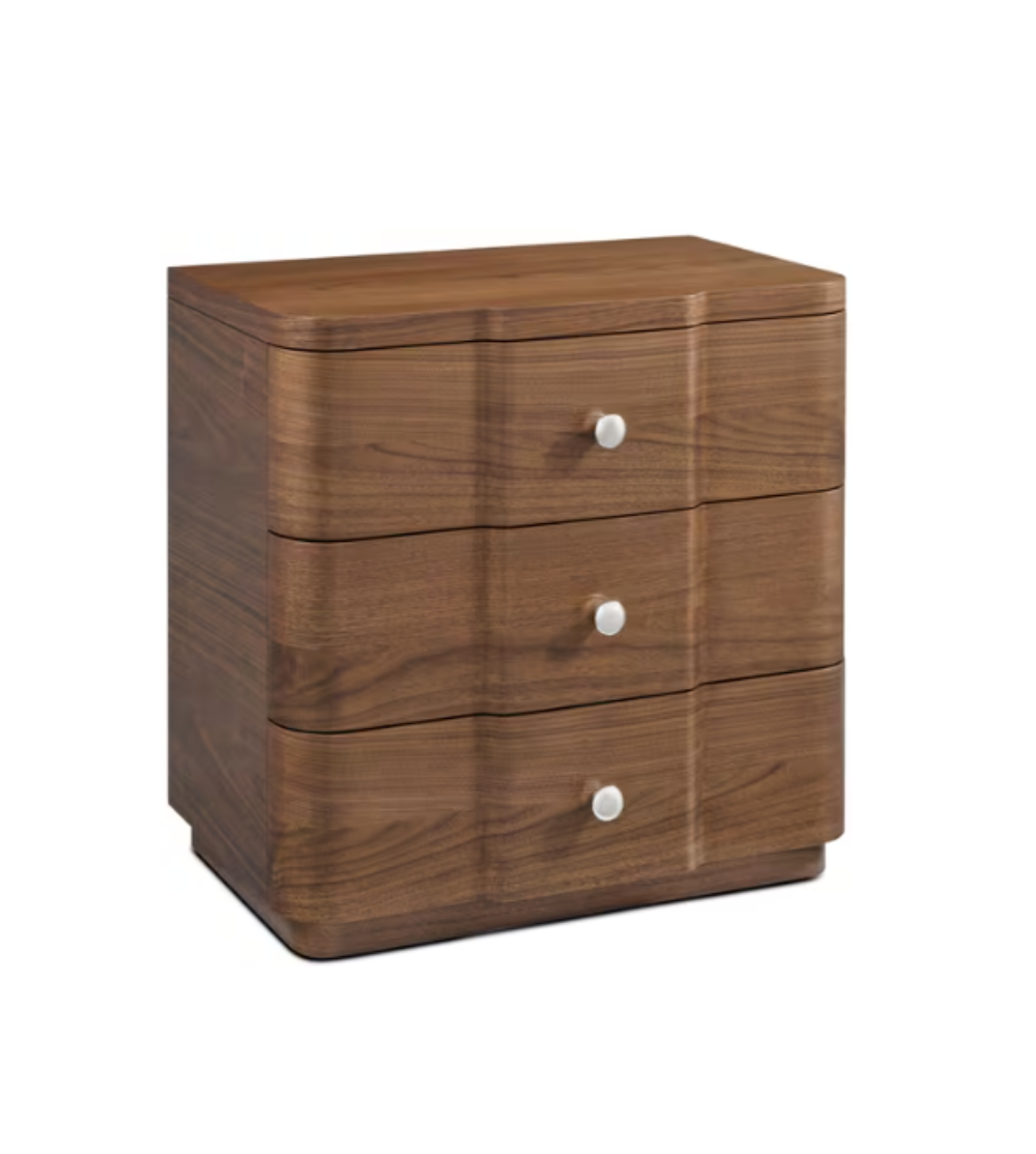 Crafted from warm Italian Walnut and styled for sophisticated modern living, the Walnut Nightstand from the luxury Spencer Coronet Collection features three spacious drawers accented with nickel-plated drawer pulls and hardware.