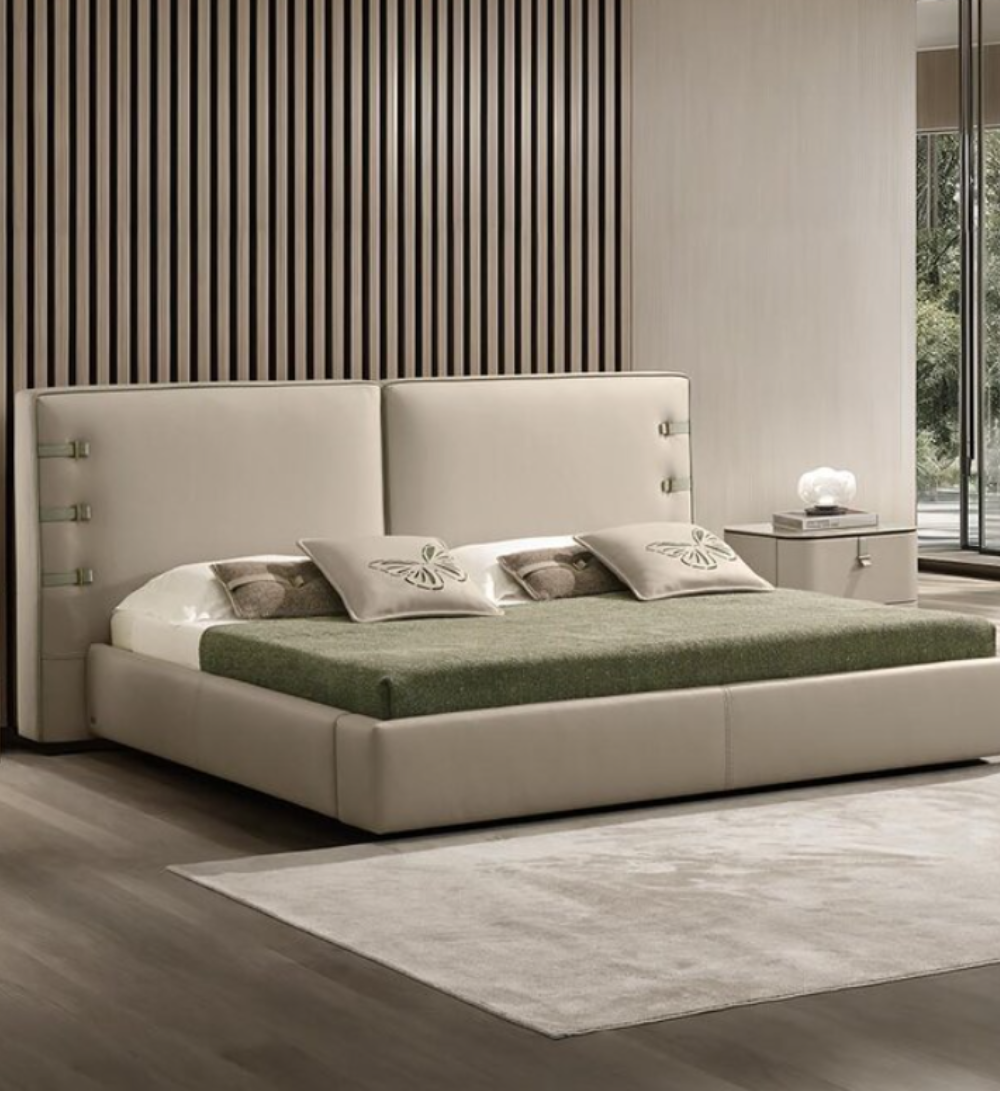 The visually-striking padded headboard, defined by thick piping accentuating its generous proportions, makes for a dramatically attractive and marvellously majestic Italian bed.