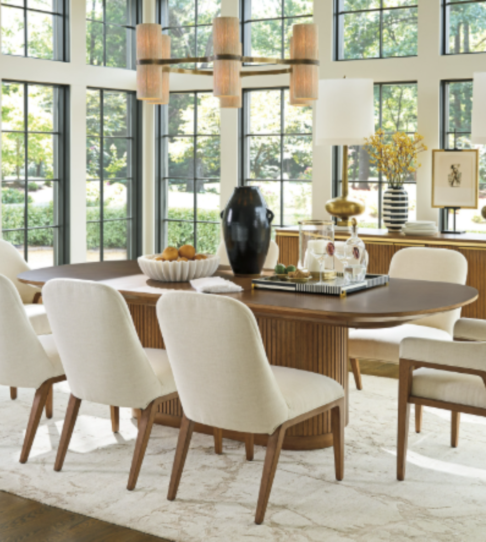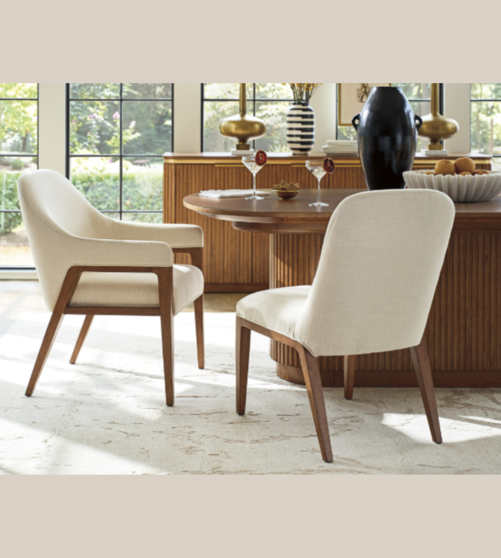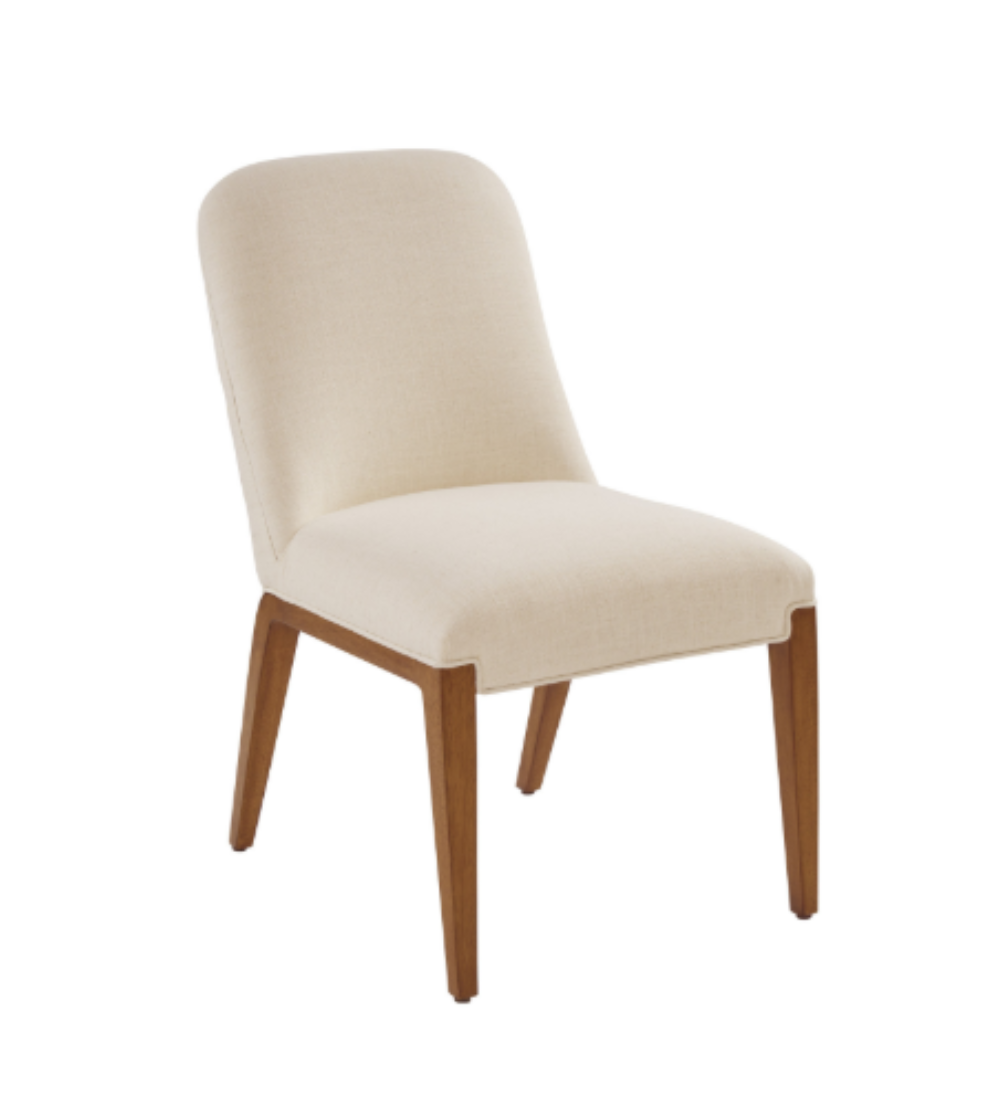 The chairs are standard in Sailview, an indoor performance fabric with a linen weave and soft hand. The chairs are also available in custom fabrics or leathers.