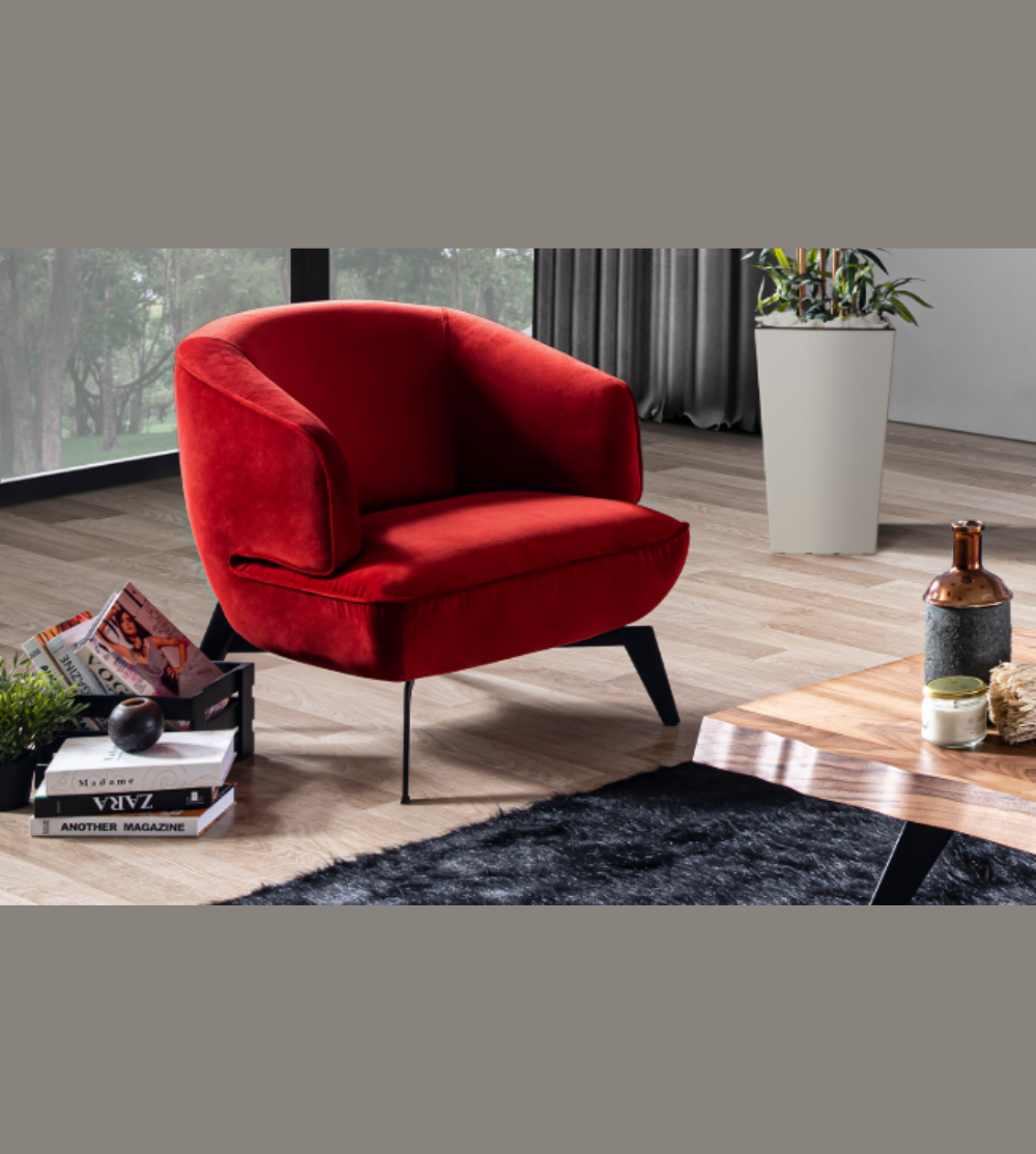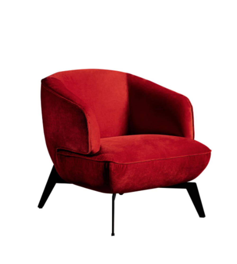 Available in Red Velvet or Black Velvet. Legs in Matt Black Powder-Coated Steel.